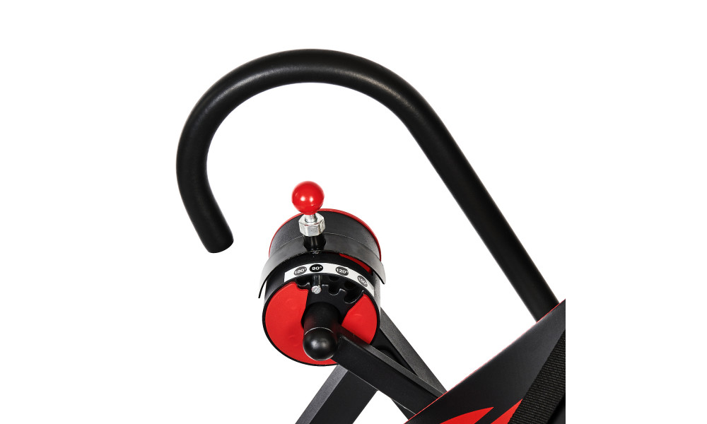 Рукоятка регулировки угла наклона фиксирует крайнее положение наклона тела в диапазоне от 90 градусов (горизонтальное положение с небольшим отклонением) до 180 (головой вертикально вниз) с промежуточными положениями 120 и 150 градусов.