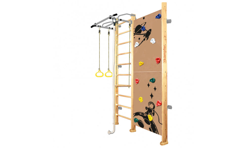 Детский спортивный комплекс ДСК Kampfer Jungle Wall это классическая версия шведской стенки одной из самых популярных моделей из линейки деревянных ДСК Kampfer дополненная скалолазом с новым интересным дизайном для мальчиков. Пристенная шведская стенка Jungle представлена в различной цветовой гамме, что позволяет подобрать нужный оттенок под дизайн помещения.